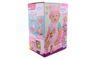 BABY born for babies Spinkáček veľkosti 30 cm má roztomilú čiapočku a hrkálku vo vnútri.