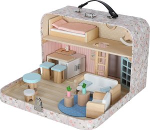 Na prvý pohľad vyzerá ako obyčajný kufrík – po rozložení sa však premení na poschodový domček, ktorý slúži ako bývanie pre bábiky.