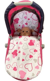 SDS Perinky do kočíka pre bábiky Srdiečka šedoružová Perinky do kočíka pre bábiky, vyrobené zo 100% Bavlny, výplň zo 100% Polyesteru je pevne všitá vo vnútri, možno prať na 30 ° C, ušité v SR možno objednať …