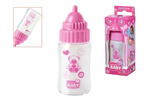 Fľaštička s miznúcim mliečko, pre bábiky o veľkosti 38 - 43 cm, s tromi detskými zvuky.
