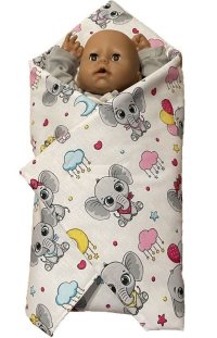 SDS Rýchlozavinovačka pre bábiky Veselí sloníci Rýchlozavinovačka pre bábiky vyrobená zo 100% Bavlny, výplň zo 100% Polyesteru je pevne všitá vo vnútri, zapínanie na suchý zips, možno prať na 30 ° C, ušité …