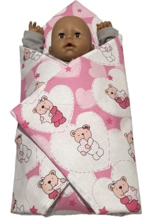 SDS Rýchlozavinovačka pre bábiky Medvedík srdiečka ružová Rýchlozavinovačka pre bábiky vyrobená zo 100% Bavlny, výplň zo 100% Polyesteru je pevne všitá vo vnútri, zapínanie na suchý zips, možno prať na 30 ° C, …