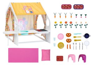 Rozmer balenia: 25x19, 5x9cm Vek: 3 + Materiál: drevo, látka Počet dielov: 9ks Pre bábiky o veľkosti 10-11 cm