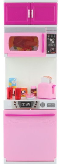 Plastový nábytok pre bábiky. Kuchynská linka s mikrovlnkou a umývačkou o rozmere 10 x 31 x 7 cm.