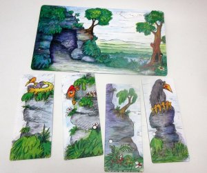 Rozmery hlavnej scény: 40x23 cm Rozmery bočnej kulisy: 9,5x23 cm Vek: 3+ Materiál: pevný kartón