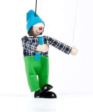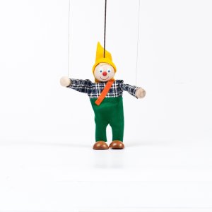 Bábka mačičky je uchytená na tenkých povrázkoch k drevenému vodiacemu krížu. zlepšuje jemnú motoriku prstíkov, podporuje sústredenie, prebúdza a rozvíja detskú fantáziu výška bábky: cca 13 cm výška …