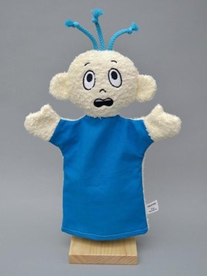 Textilný maňuška predstavujúci emóciu strach, vhodný pre psychologické poradne, špeciálnych pedagógov, učiteľov v škôlkach a detských skupinách a tiež pre domáce hranie.