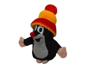 Krtko prstový maňuška s červeno-žltým čiapkou. Pre deti bez obmedzenia veku, CE