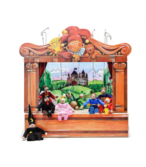 Rozmery: 32X46X41 cm Veľkosť bábok: 12-15 cm Vek: 3+ Obsahuje 8 bábok a kulisy