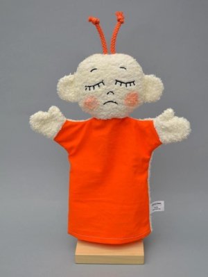 Textilný maňuška predstavujúci emóciu stud, vhodný pre psychologické poradne, špeciálnych pedagógov, učiteľov v škôlkach a detských skupinách a tiež pre domáce hranie.
