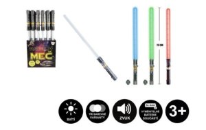 Meč pri pohybe mení zvuk, pri zasiahnutí cieľa vydáva zvuk a svieti.