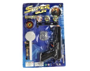 Policajná sada Top secret obsahuje kovovú policajnú pištoľ, tlmič, ďalekohľad, policajný preukaz + policajnú pušku.
