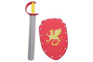 Meč a štít penový set. Dĺžka meča 42,5 cm.