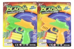 Plastová pištoľ. Sada obsahuje 3 penové náboje a 8 plastových guličiek.