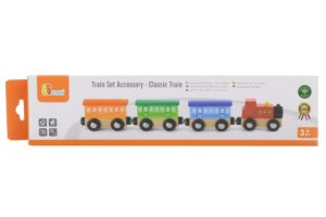 Rozmery 1 vagóniku: 7,7x5x3,5 cm Rozmery balenia: 45x15,7x13,6 cm Vek: 3+ Materiál: vysoko kvalitné drevo z udržateľných a obnoviteľných zdrojov Ručne domalovávané ekologickými farbami