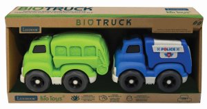 Súprava nákladných áut Lexibook predstavuje ekologicky šetrné hračky vyrobené čiastočne z bioplastu na báze pšeničnej slamy.