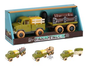 Auto farmár nákladné s vlekom 26 cm, mix druhov, PH. mix druhov: - príves: s ovcami - príves s koňmi - príves s drevom materiál: plast Nákladné auto s vlekom, mix 3 druhov.