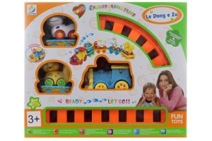 Baby vlaková sada. Napájanie lokomotívy na 3xAA batérie - nie sú súčasťou balenia.