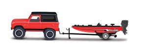 Dizajn Tow & Go1:64 Model automobilu s prívesom - 1966 Ford Bronco s motorovým člnom.