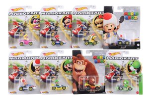 Vyber si svoju obľúbenú Mario Kart™ postavu a vyraz plnú rýchlosťou na off-line preteky a kaskadérske šialenstvo s Hot Wheels® Mario Kart™ angličákmi v mierke 1:64!
