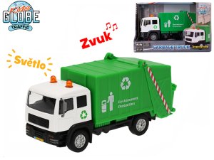 Smetiarske auto na voľnobeh, svetelný a zvukový efekt, pohyblivé časti, otváracia zadná časť, popolnice súčasťou.