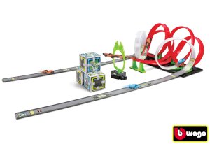 Dráha s autom. Veľkosť auta 8 cm. 1xAA batéria do auta nie je súčasťou. Žiadne svetelné a zvukové efekty. 4 varianty auta - zelené, žlté, modré, fialové.