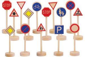 Drevené dopravné značky zabraňujú nehodám pri hre s autami a autodráhami, skvelá pomôcka na osvojenie základov cestných pravidiel, príprava hrou pre budúcu návštevu dopravného ihriska, vyrobené z masívneho …