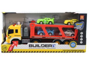 Plastový kamión s vlekom na zotrvačník o rozmere cca 32 x 11 cm.