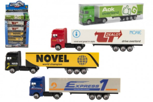 Nákladné auto s návesom, kovové, na voľnobeh, pohyblivé časti.