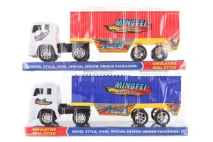 Plastový kamión s vlekom na zotrvačník o rozmere cca 32 x 11 cm.