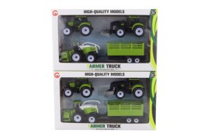 Tento skvelý traktor s prívesom plným sena je ideálnou hračkou pre malých farmárov! Traktor o veľkosti 45×9×7,5 cm je vybavený pohonom na zotrvačník, čo znamená, že stačí traktor zatlačiť, a ten sa sám rozbehne.