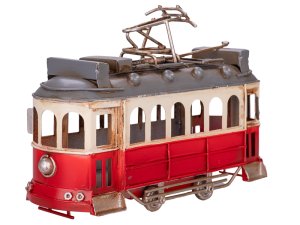 Originálna kovová električka v červeno-bielom prevedení je to pravé do tvojej zbierky dopravných prostriedkov.