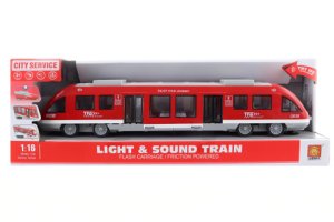 Plastový vlak na batérie. Vlak vydáva zvuky a svieti.