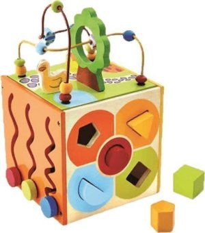 Multifunkčná motorická kocka je kvalitnou drevenou hračkou pre malé šikulky.