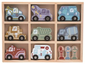 Rozmery: 12,4 x12, 8x28 cm Vek: 18m + Materiál: drevo Obsahuje: 9 hracích prvkov