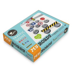 Drevená sada autíčok a dopravných značiek. balenie obsahuje 6 základných dopravných značiek a 2 autíčka vyrobené v Českej republike
