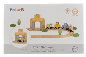 Rozmery: 9x36,5x6,5 cm Rozmery balenia: 10x38x7 cm Vek: 1,5+ Materiál: drevo, recyklovateľné obaly Obsahuje: 1 lokomotívu, 2 vagóniky a 2 zvieracích kamarátov