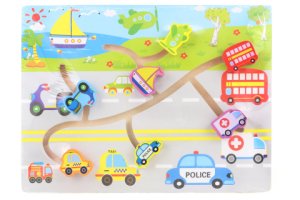 Drevené bludisko s dopravnými prostriedkami.