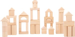 Rozmery najväčšej kocky: 6x3x3 cm Rozmery najmenšej kocky: 3x3x1 cm Vek: 12m+ Materiál: drevo Obsahuje 50 kociek Súčasťou balenia je plátené vrecúško
