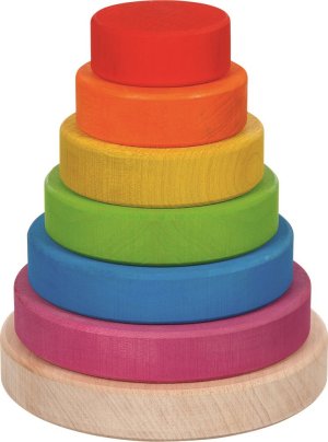 Zábavná skladačka s veselými farbami, jednotlivé dieliky sa nasúvajú na tyčku, poradie jednotlivých dielov je možné meniť, podporuje motoriku a koordináciu očí a rúk, vyrobené z masívneho dreva, použité farby …