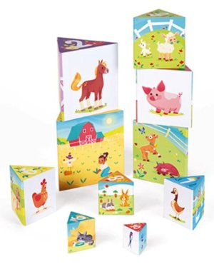 Skladacia pyramída s motívmi života na farme pomáha vášmu dieťaťu objavovať rôzne zvieratká a činnosti na farme.