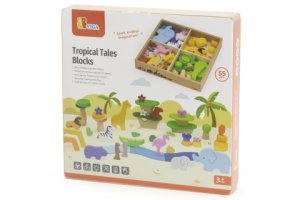Veľká sada drevených blokov s motívom afrických zvieratiek.