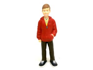 Figúrka muž v mikine. Rozmery 3,3x2,3x10 cm.