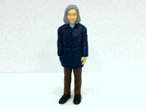 Figúrka muž v bunde. Rozmery 4,1 x2, 4x12, 6 cm.