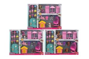 Krásna veselá sada psíkov s doplnkami.