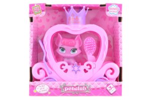 Sada mačička s kočíkom. Balenie obsahuje 1 mačičku s hrebienkom na chvostík a kočík s korunkou.