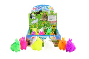 Gumový strapatý zajačik. Vnútri je svietiaca gulička, ktorá bliká.