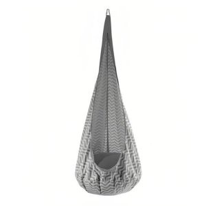 Hojdací vak s nosnosťou až 50kg je vyrobený zo 100% bavlny, šedý dizajn so vzorovaním.
