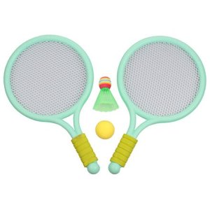 Ľahká sada 2 detských rakiet s mäkkým výpletom na plážový tenis alebo bedminton, vrátane loptičiek