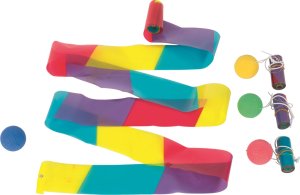 Farebná stuha s loptičkou poskytuje krásny pohľad na vlniace sa farby.